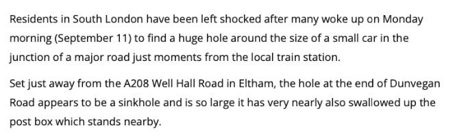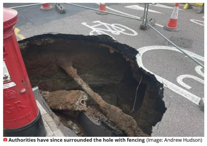 Your news of the recent appearance of a sinkhole in south London alarmed me, but for me the panic was less about the hole itself and more about the resulting risk to the services of Royal Mail.
