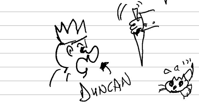 You have kindly granted me permission to reproduce your illustration of a pivotal scene from Macbeth below, complete with caption: