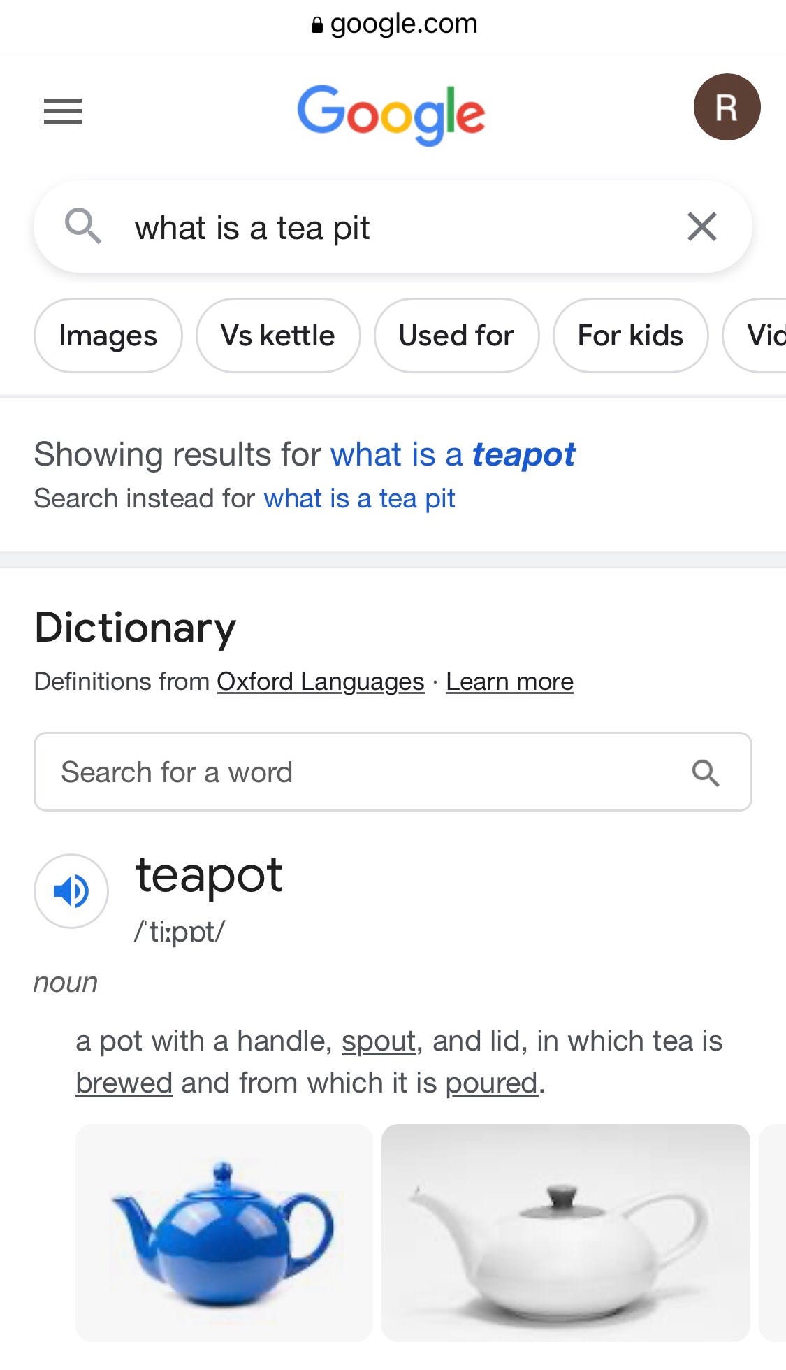 In my defence, Terry, the BBC News article did show ‘tea pit’ as two separate words, whereas ‘teapot’ is always one.